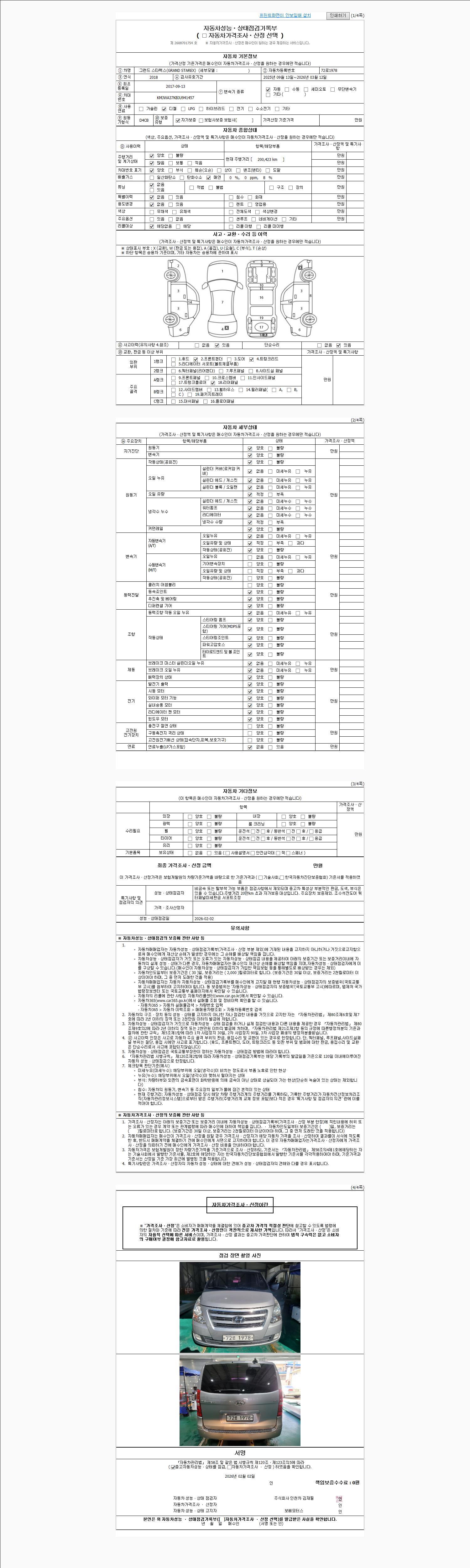 | 주행거리 | 200,000 km | 차량번호 | 72로1978 | 사고유무 | 성능기록부 참조 | 제시번호 | 제 2026005872 호 |