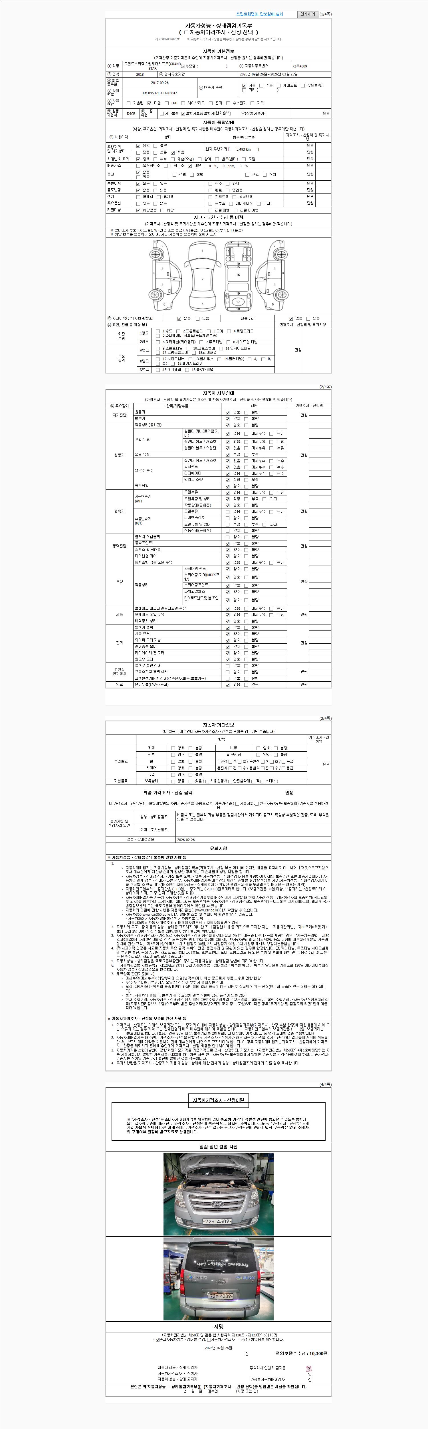 | 주행거리 | 5,478 km | 차량번호 | 72루4309 | 사고유무 | 성능기록부 참조 | 제시번호 | 제 2026008337 호 |